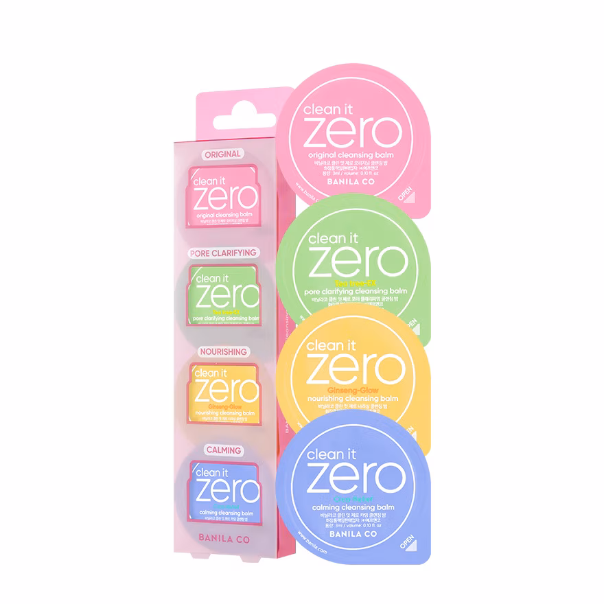 El Clean It Zero Cleansing Balm Trial Kit de Banila Co. incluye las 4 versiones del famoso bálsamo desmaquillanteen miniaturas, ideales para probar toda la línea y descubrir cuál se adapta mejor a tu piel. Este kit permite remover maquillaje, protector solar e impurezas de manera suave pero efectiva, dejando el rostro limpio, hidratado y confortable.