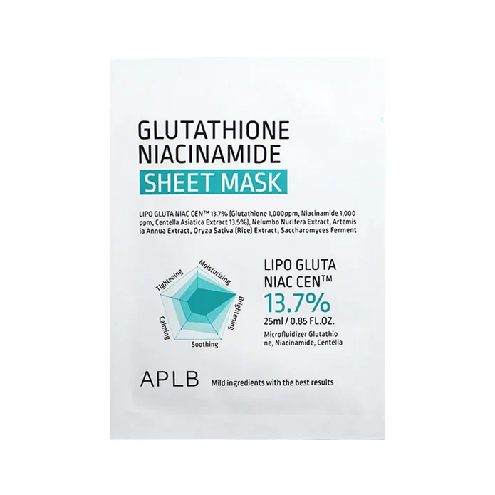 ¿Necesitas un SOS iluminar tu piel y dejarla radiante? La mascarilla de Glutatión y Niacinamida de APLB es lo que buscas. Formulada con un 13.7% de LIPO GLUTA NIAC CEN™, un ingrediente patentado que utiliza la sinergia del Glutatión y la Niacinamida, dos potentes despigmentantes y antioxidantes, y Centella Asiática, un hidratante y calmante, para otorgarle beneficios a la piel de forma eficaz y suave, esta mascarilla te permitirá tener un momento de autocuidado dándole un impulso de suavidad a tu piel.