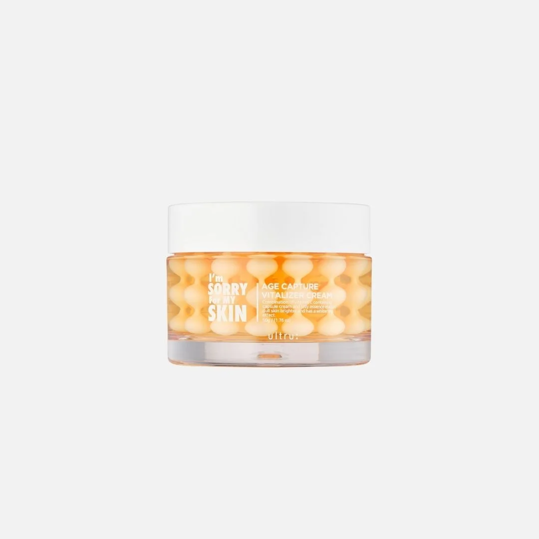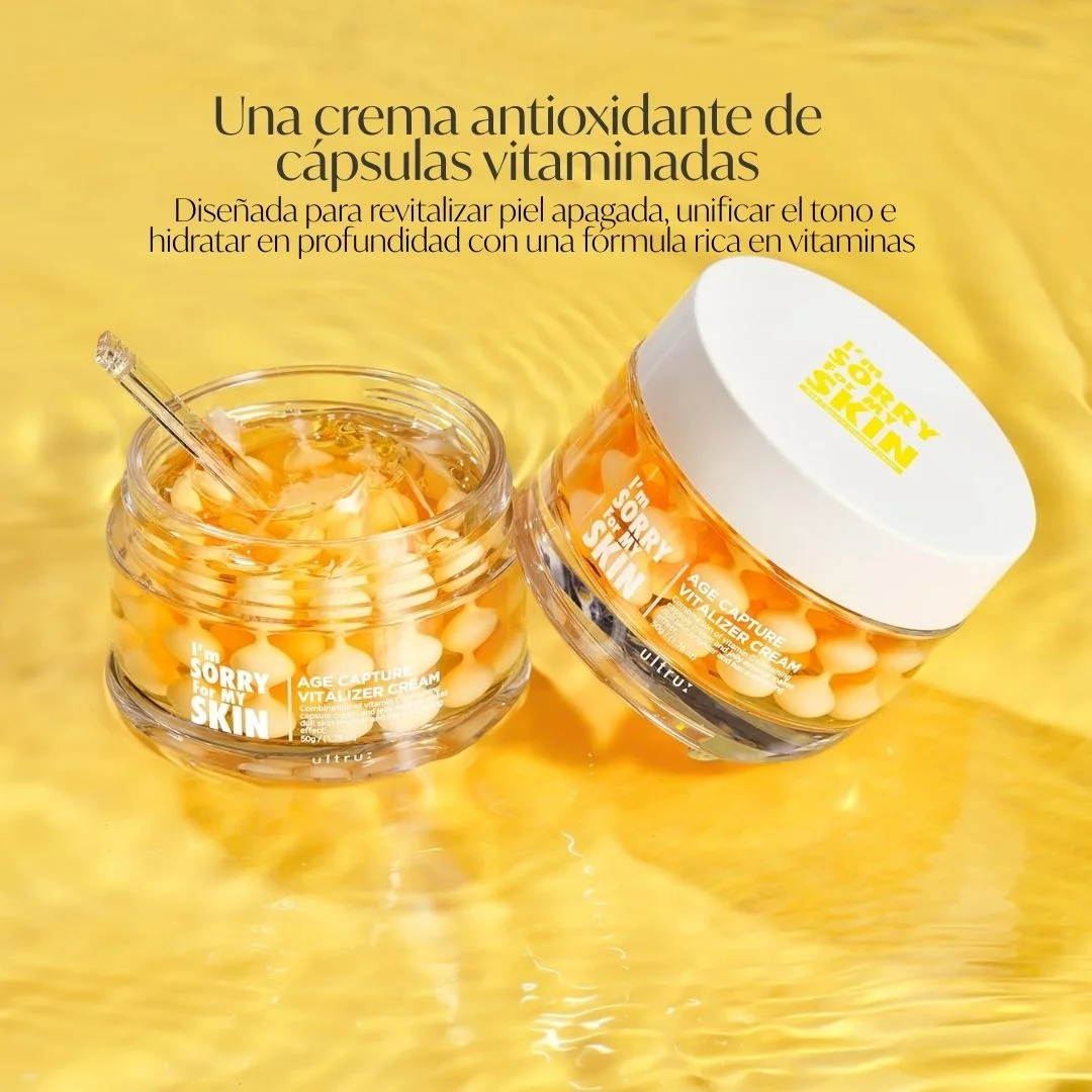 La Capture Vitalizer Cream de I’m Sorry For My Skin está diseñada para devolverle a la piel su energía natural, combatiendo los signos de fatiga y revitalizando el rostro con un acabado saludable y luminoso. Gracias a su fórmula con niacinamida, vitaminas C y E, y glutatión, ayuda a iluminar el tono, aportar firmeza y proteger frente al daño oxidativo.
