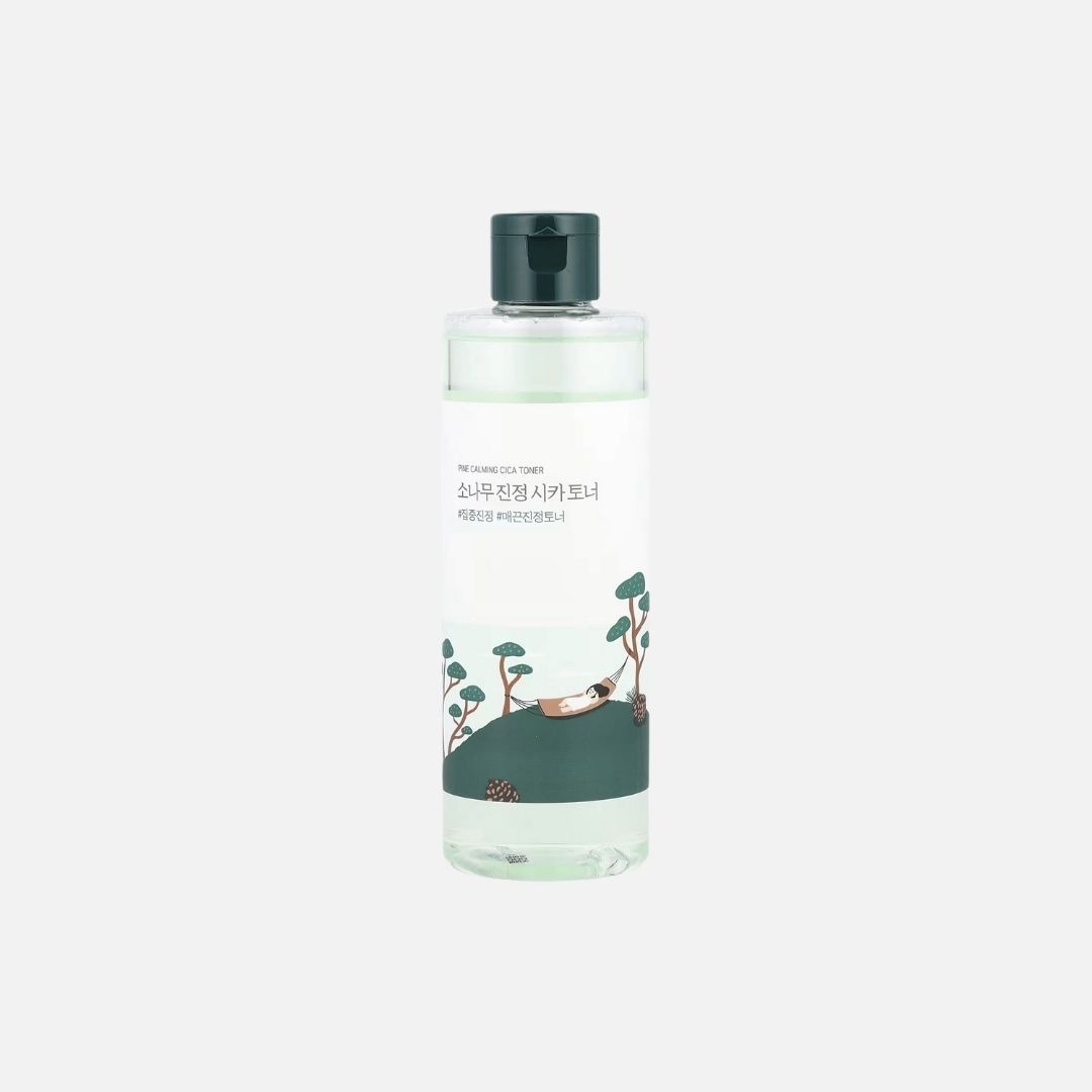 El Pine Calming Cica Toner de ROUND LAB es un tónico refrescante que calma, hidrata y repara la piel irritada. Contiene una alta concentración de extracto de hoja de pino coreano, junto con centella asiática, Houttuynia cordata y ácido hialurónico para reforzar la barrera cutánea, reducir el enrojecimiento y aliviar brotes. Su fórmula sin fragancia ni alcohol es perfecta para pieles sensibles o estresadas por factores ambientales. Se absorbe fácilmente sin dejar sensación pegajosa.